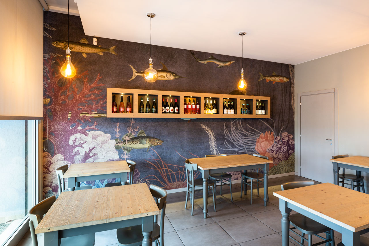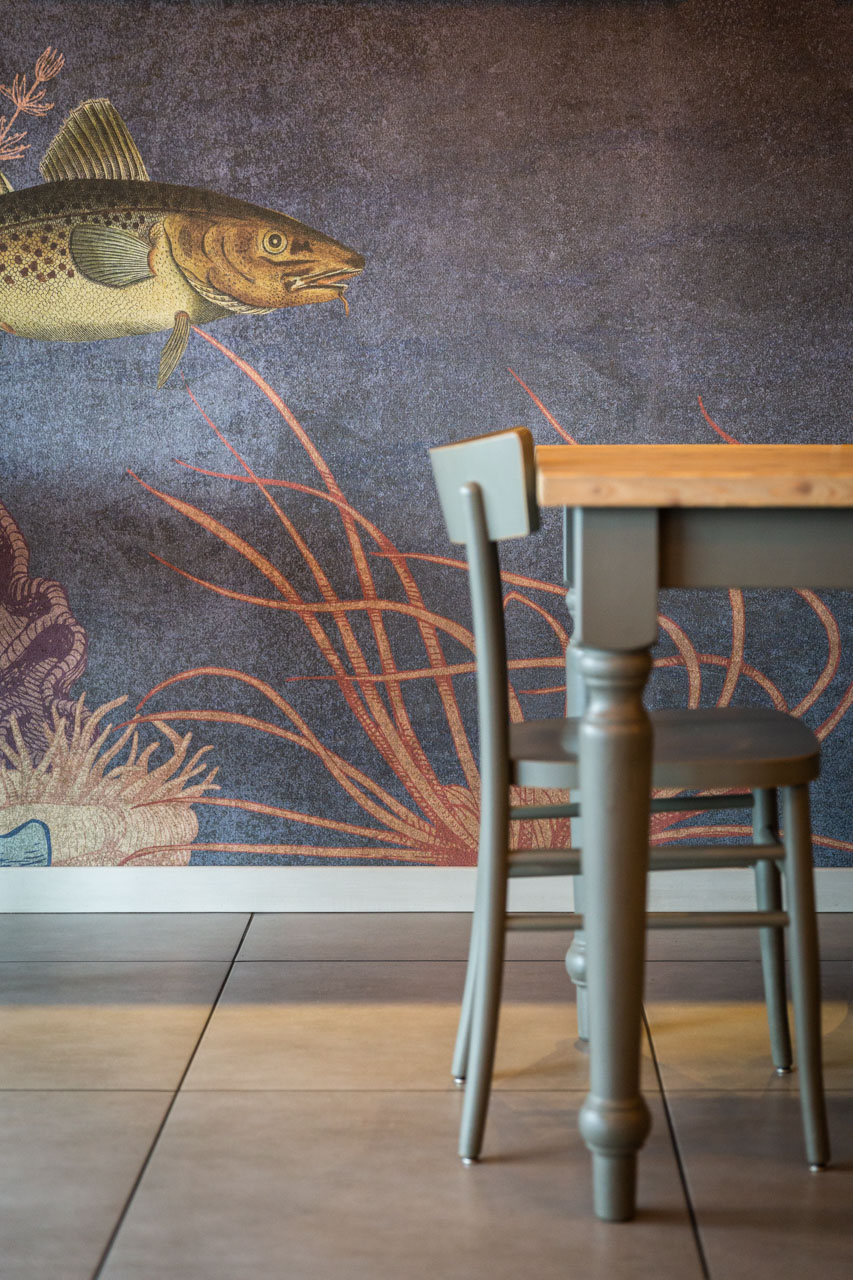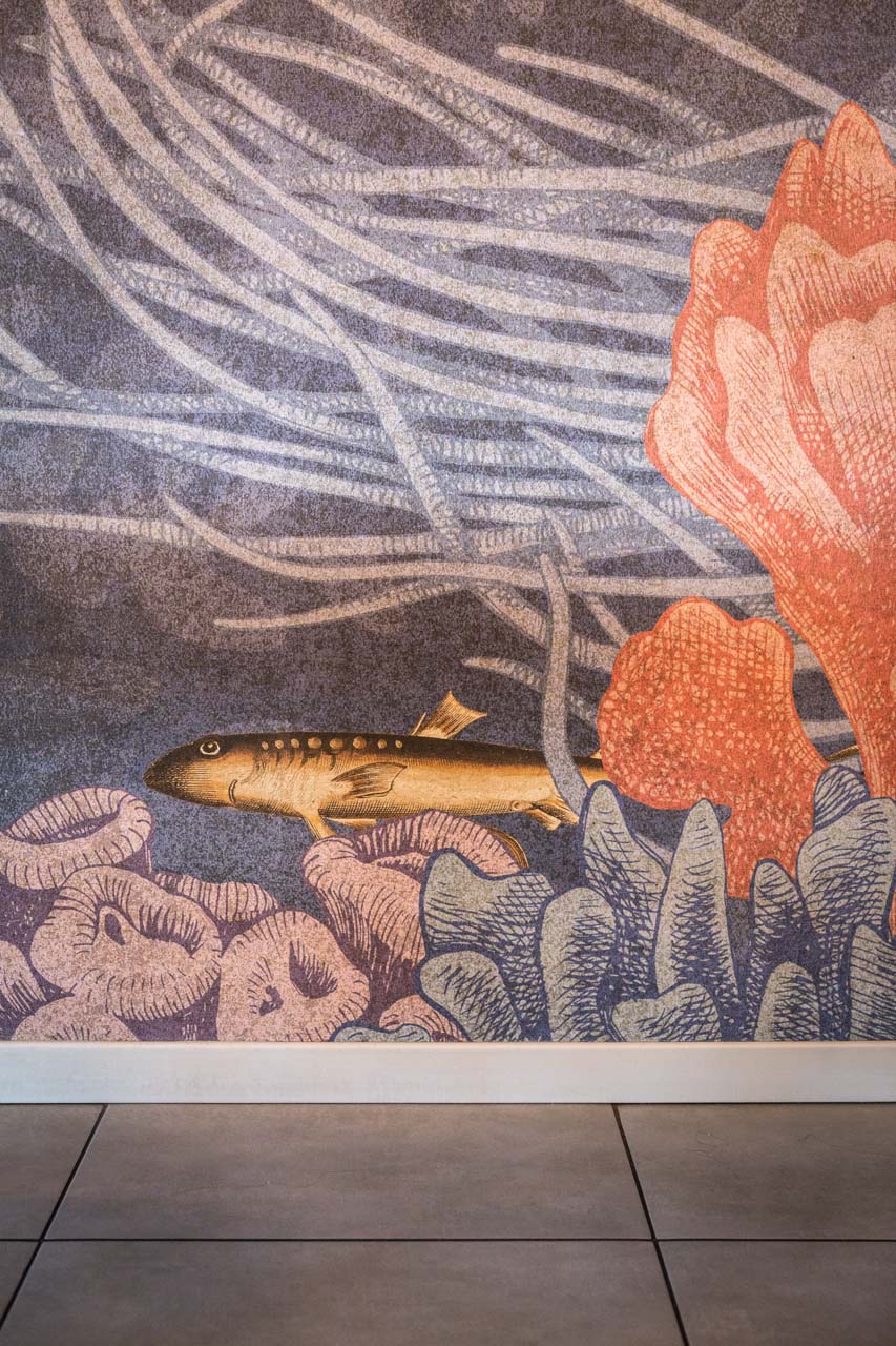 Una carta da parati che rappresenti perfettamente questa location? La scelta finale è un tripudio di pesci in un divertente habitat marino.